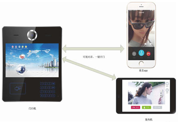 1.門口機呼叫,門口機呼叫業主app、室內機,依次呼叫室內機、業主建立視頻通話。