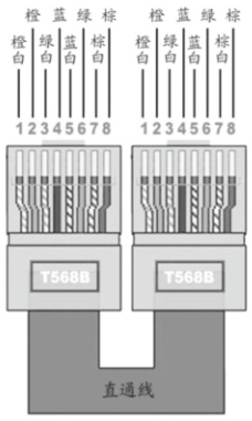 順序:橙白色-橙色-綠白色-藍色-藍白色-綠色-棕白色-棕色(568B類直通線標準打法)每根網(wǎng)線所對應的功能: